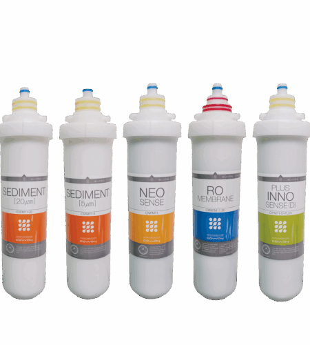 | 필터 카트리지 | 1단계) 세디먼트 5μm 2단계) 세디먼트 20μm 3단계) 네오센스 (세디먼트 + 프리 카본) 4단계) RO (역삼투 멤브레인) 5단계) 이노센스 (포스트 카본 + 파인) |